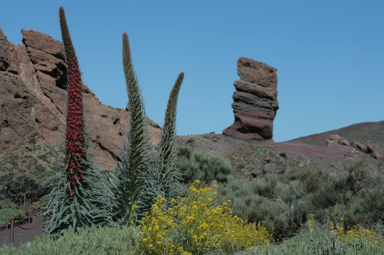 Teidenattern. Im Hintergrund der Roque Cinchado, der auch als „Finger Gottes“ bekannte ist.