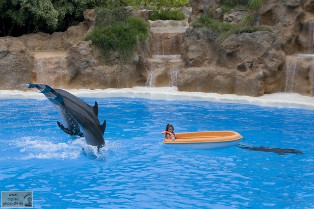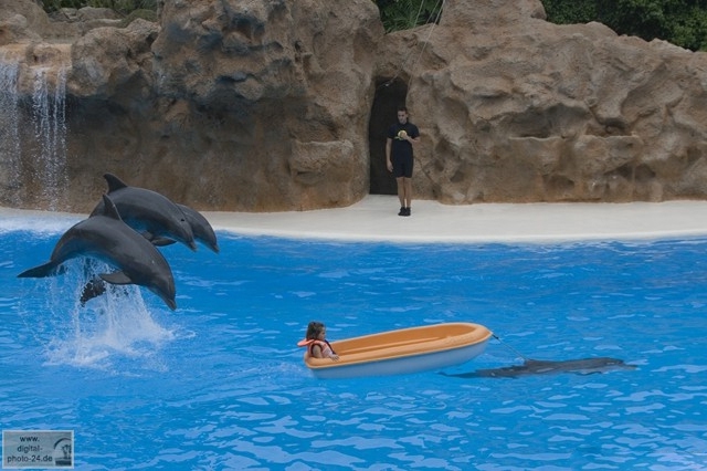 Außerdem darf bei jeder Show ein Kind in einem kleinen Boot Platz nehmen und sich durch das Becken ziehen lassen.