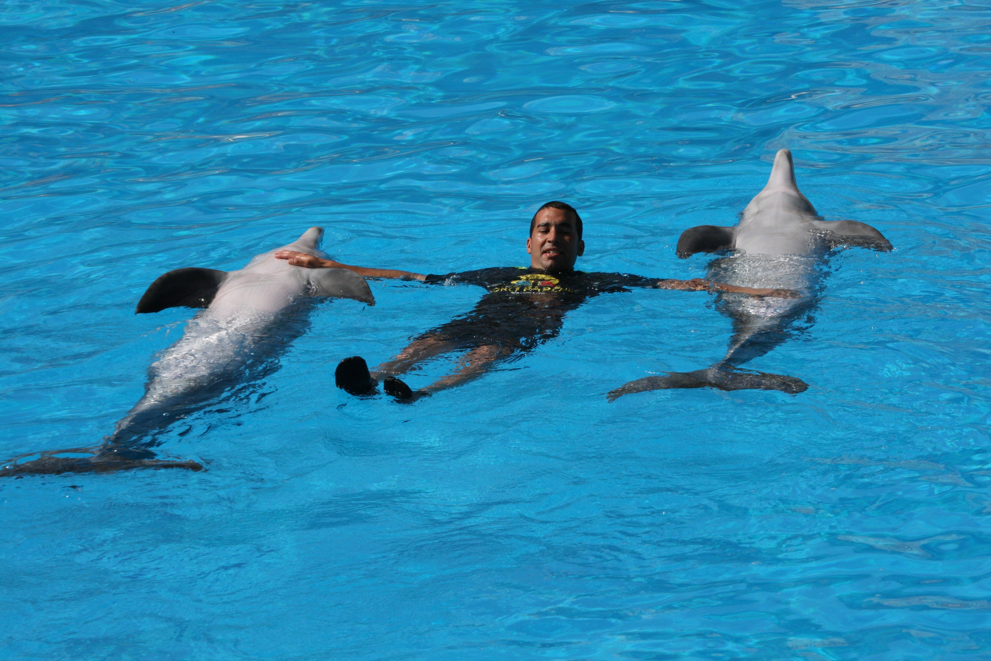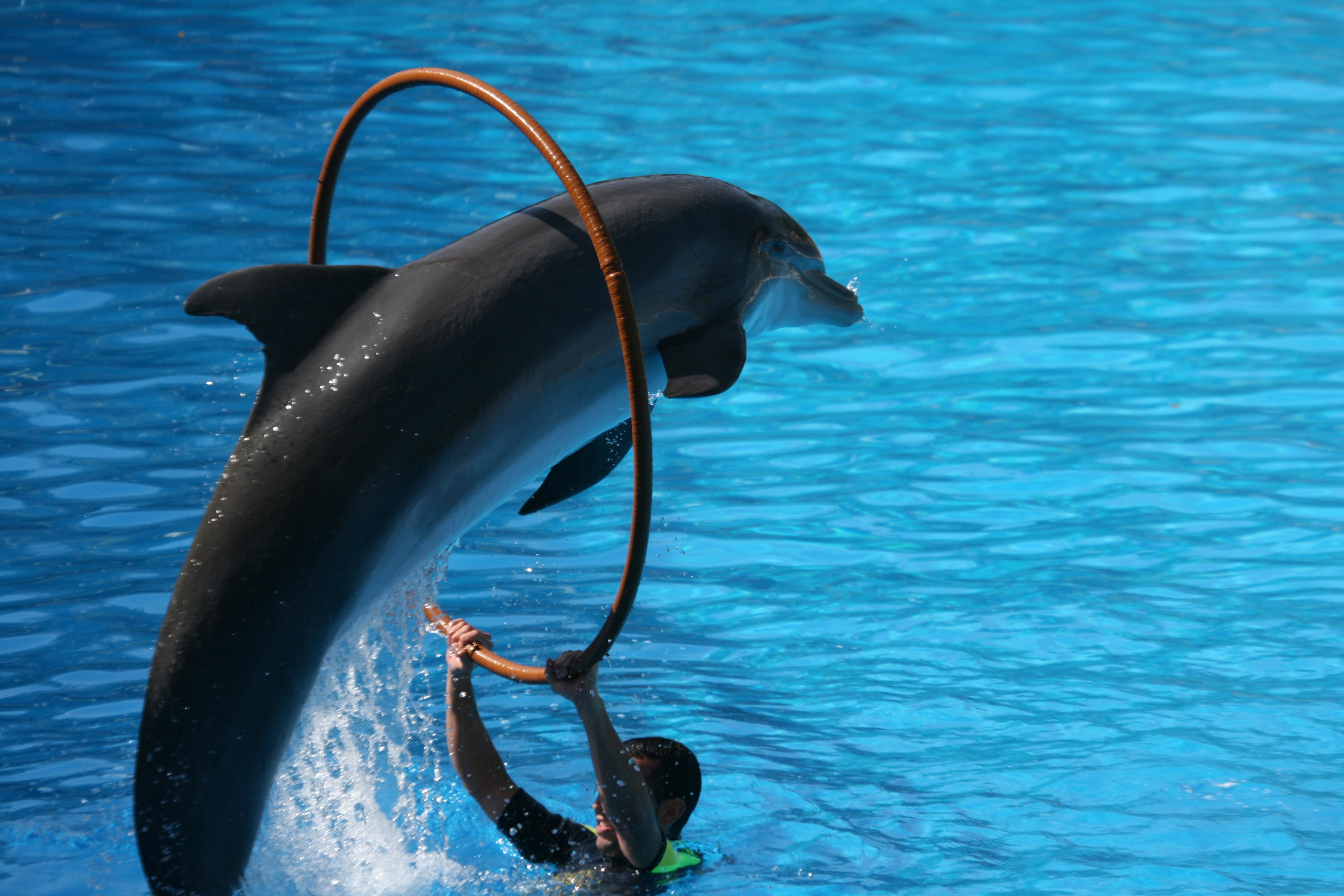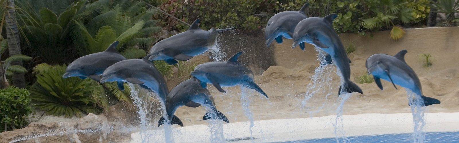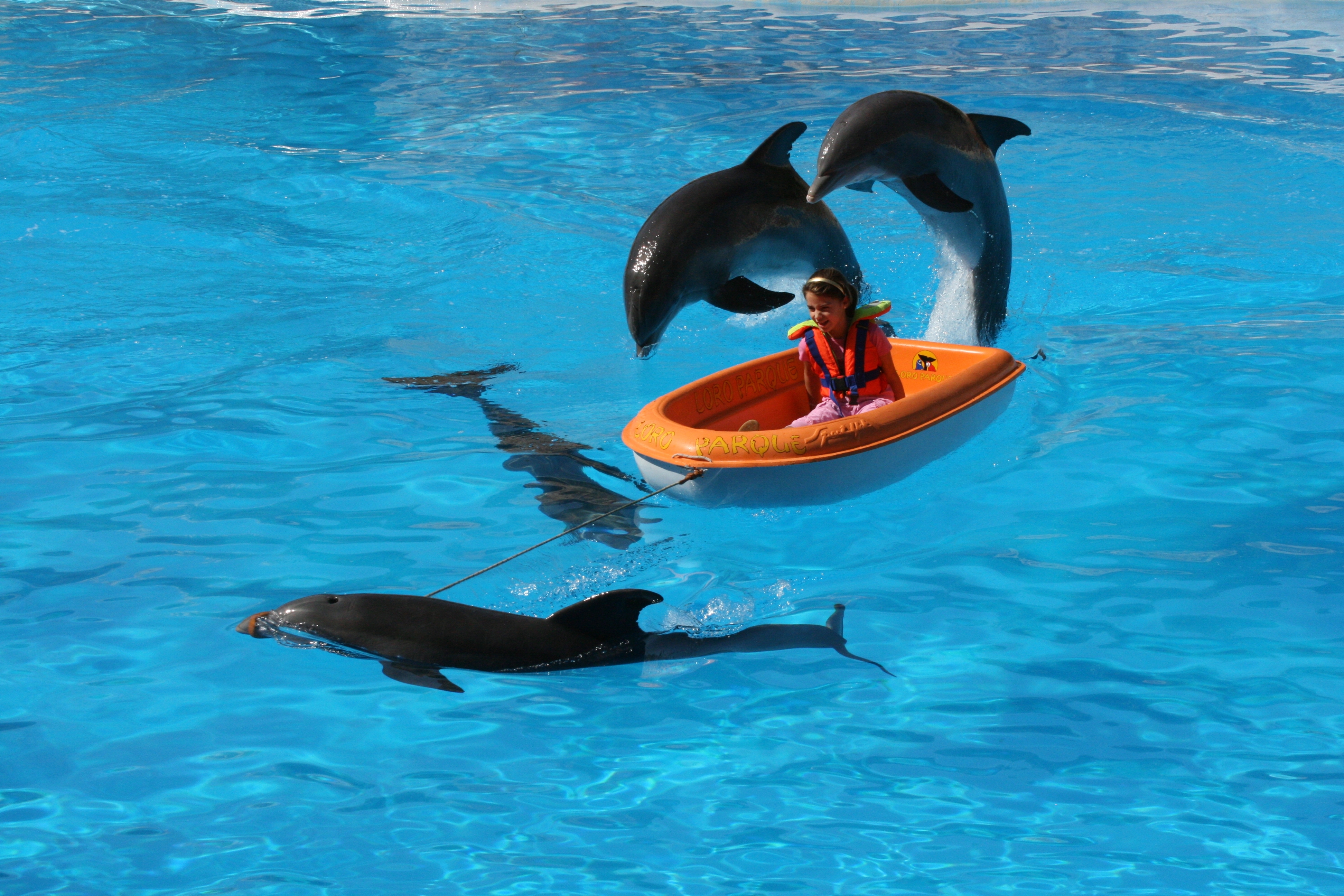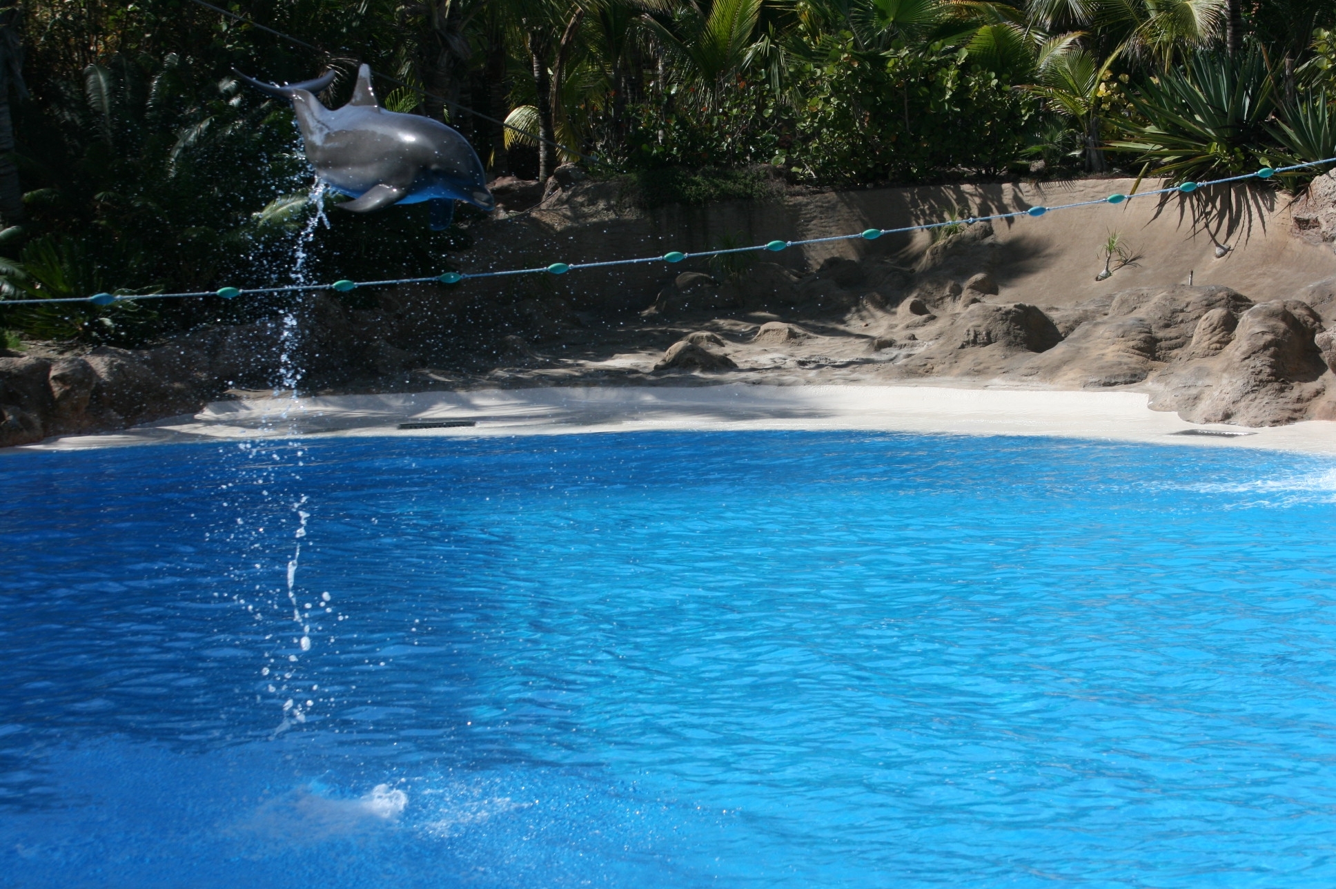 Im Delfinarium des Parks findet bis zu 1800 Zuschauer Platz, um die schlauen Meeressäuger zu beobachten.